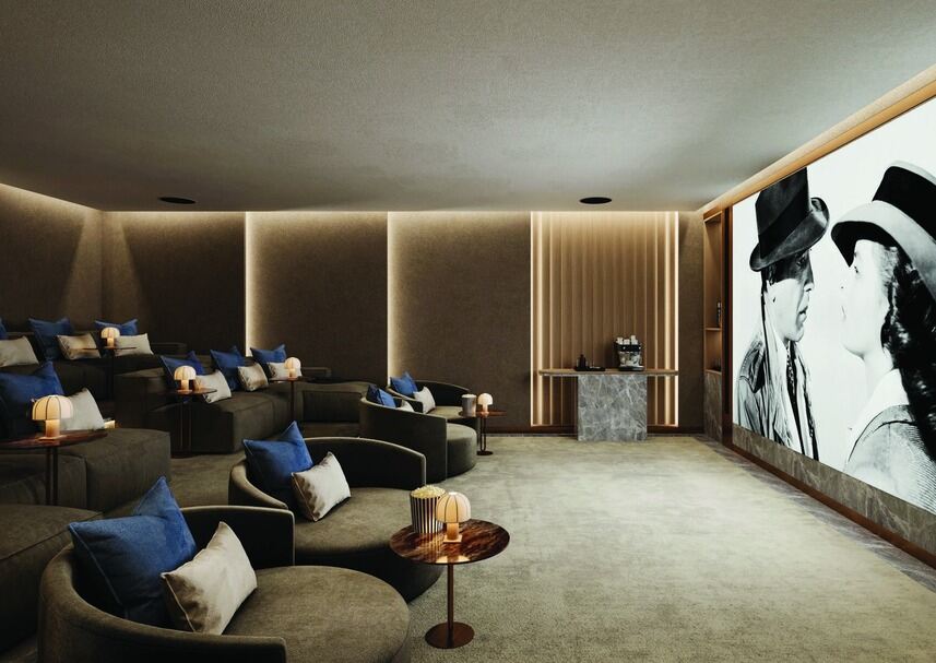 Commodités de style club de plage, spa de bien-être, cinéma privé et simulateur de golf