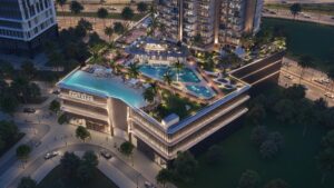 Voxa Pantheon offre des appartements de luxe entièrement meublés à Jumeirah Village Triangle (JVT), Dubaï, avec des studios, des appartements de 1 et 2 chambres, et des penthouses de 4 chambres. Les prix commencent à partir de 159 417 €. Date d'achèvement prévue : Q3 2028.